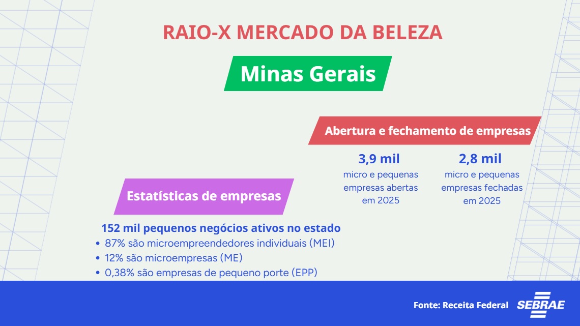 Para fortalecer a competitividade dos pequenos negócios da beleza, o Sebrae Minas lança em 2026 a estratégia + Serviços, com a criação de jornadas de capacitação em todo o estado, com foco em gestão financeira, marketing, legislação e posicionamento do cliente no mercado e redes sociais. As ações visam apoiar as pequenas empresas de serviços no mercado, com ferramentas, processos e inteligência capazes de transformar a experiência dos clientes, criando diferenciação e proposta de valor que torna os pequenos negócios mais competitivos.