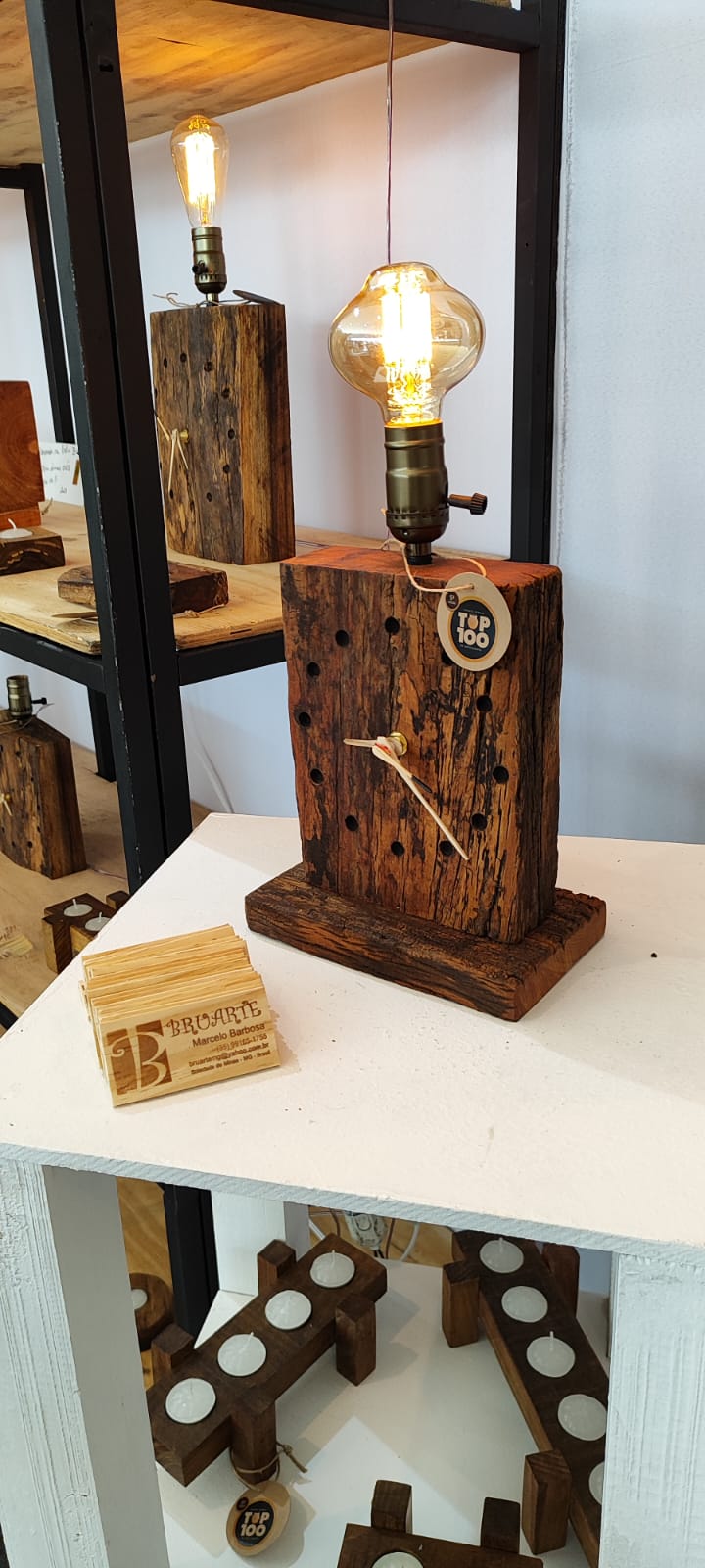 Há 23 anos na atividade, ele produz jogos educativos com madeira certificada e relógios rústicos feitos de sobras de madeira que seriam descartadas. Ele transforma o que não tinha destino em algo que marca o tempo. Com consultorias e participação em feiras, Marcelo aprimorou acabamento e gestão. “Depois que eu conheci o Sebrae, meu negócio, a Bruarte, tomou ainda mais forma. A instituição alavanca o artesanato e nos auxilia também com clientes e lojistas. Graças ao Sebrae cheguei ao top de linha dos meus jogos e relógios e, com isso, conquistei o TOP 100 de Artesanato, um orgulho que carrego comigo e almejo conquistar novamente”, conta.