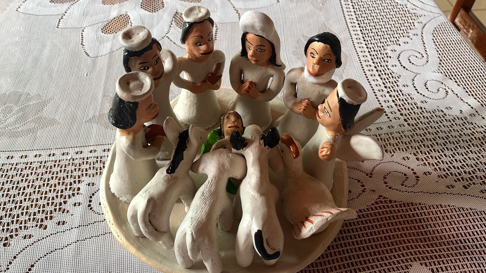 Nos demais meses do ano, o faturamento da ceramista tem origem nas famosas bonecas-moringas, vasos e utilitários. Agora, ela utiliza dos traços fortes, inspirados nas pessoas do Vale e no imaginário popular, para moldar o presépio. A modelagem no barro é histórica pois, diante da ausência de recursos e tecnologia, a solução manual ajudava na manifestação da fé nas casas e igrejas.