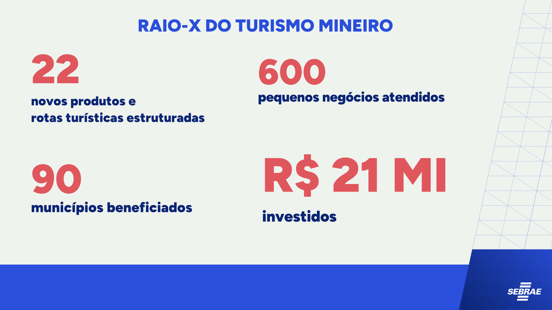 “Ao longo dos últimos anos, Minas Gerais construiu uma oferta turística robusta, capaz de atender diferentes perfis de visitantes e gerar oportunidades em todas as regiões do estado. Em 2026, vivemos um encerramento de um cilo muito importante para o turismo mineiro. Vamos entregar os produtos turísticos, superando a meta inicial. A entrega só possível graças ao atendimento do Sebrae Minas, por meio do Check-in Turismo, que estrturou destinos, fortalecendo o trade turístico e as governanças locais. Avançamos na criação de experiências para atender melhor nossos visitantes”, destaca o presidente do Conselho Deliberativo do Sebrae Minas, Marcelo de Souza e Silva.