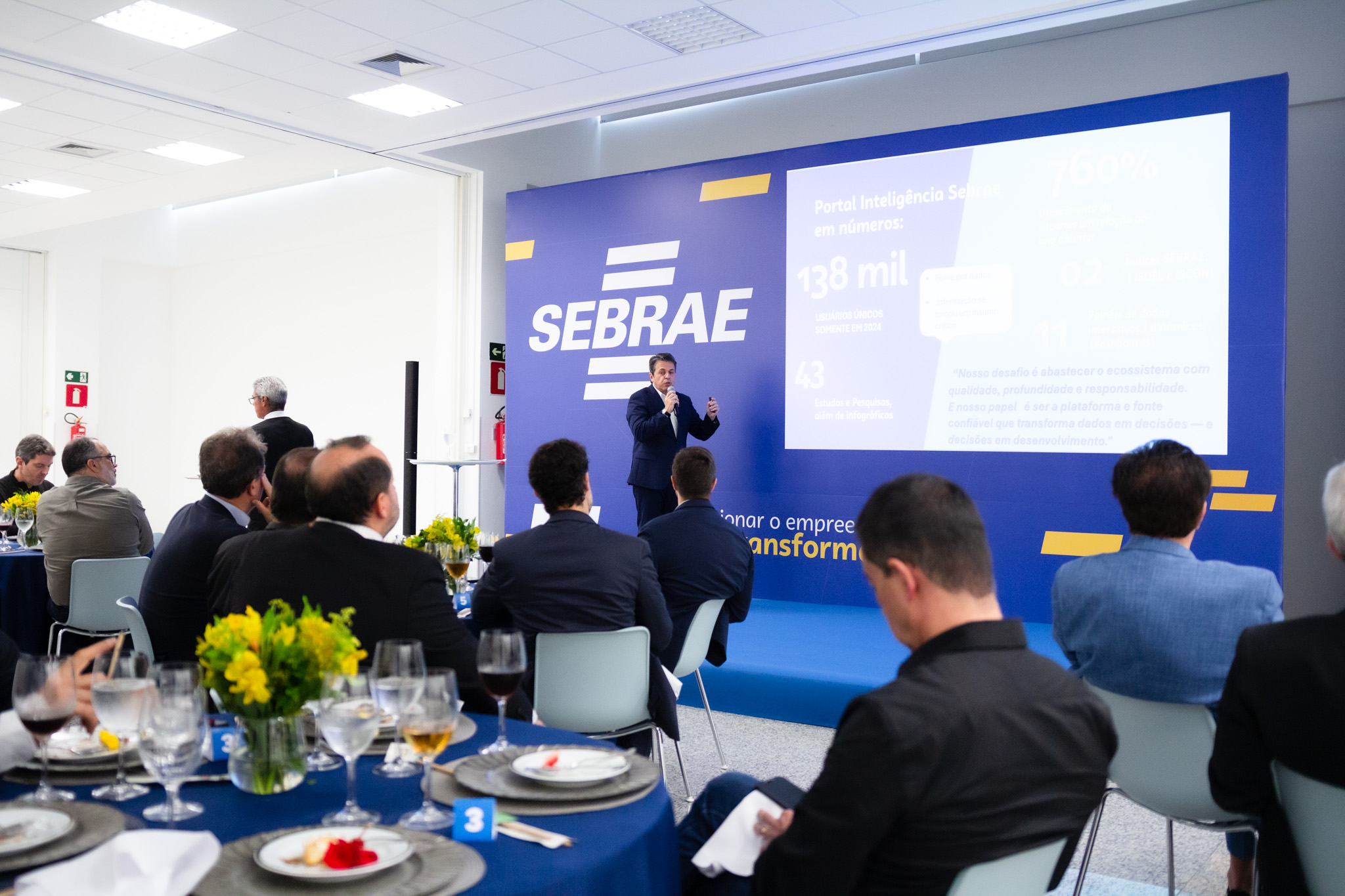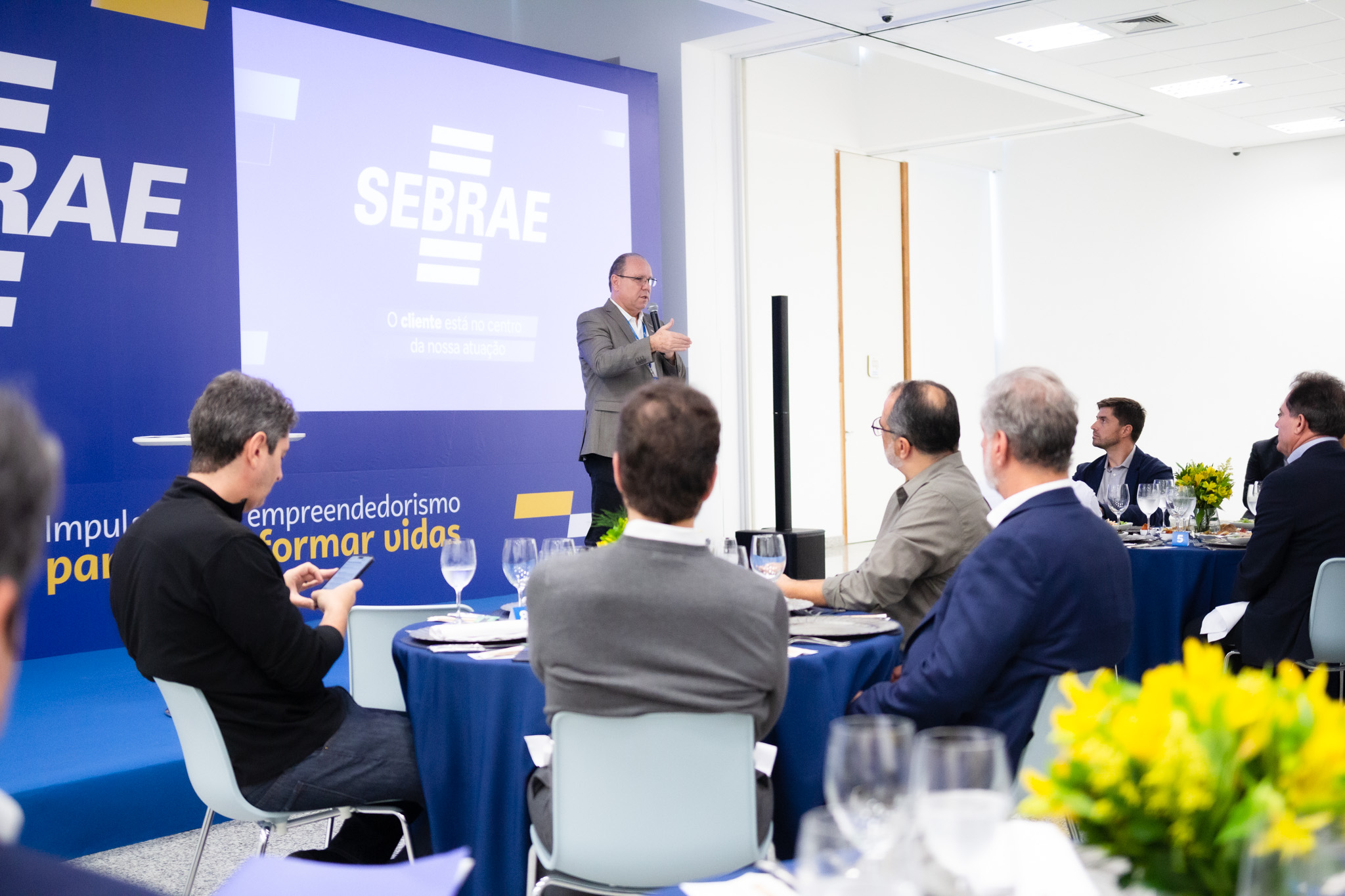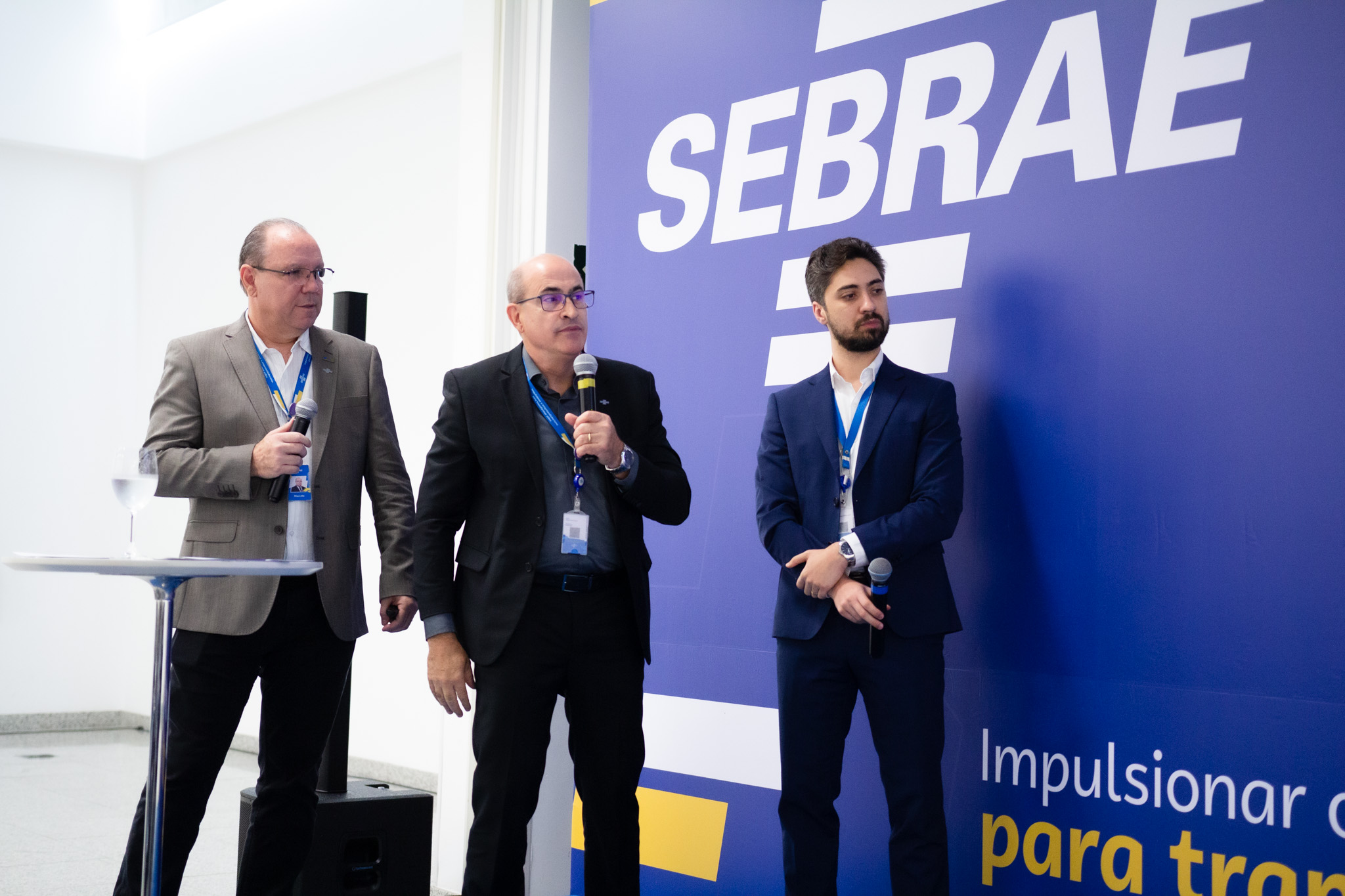 Ao lado do superintendente, Afonso Maria Rocha, e do diretor técnico, Douglas Cabido, Marcelo Silva também mostrou os resultados do Programa Cidade Empreendedora, presente em mais de 730 municípios, e o avanço da educação empreendedora, que já impactou mais de 3,5 milhões de estudantes em todo o estado.