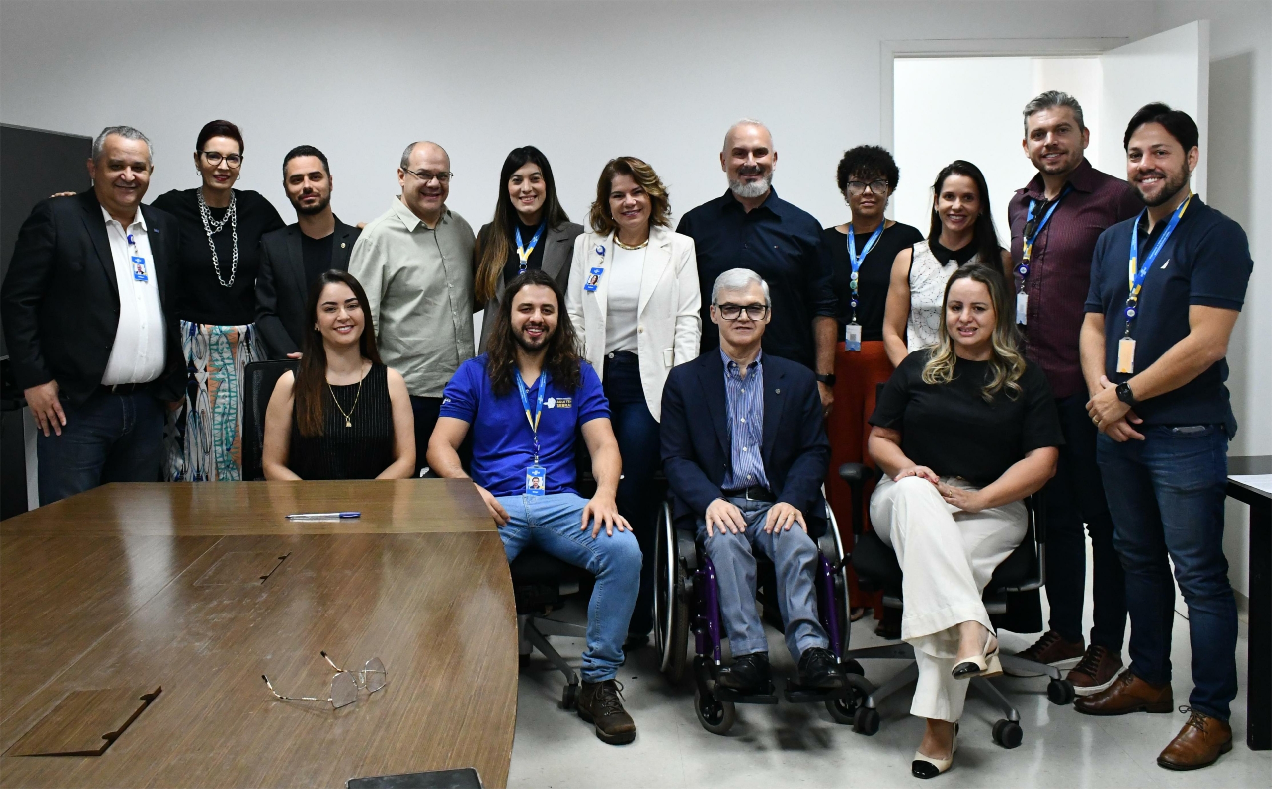 Representantes da Universidade Federal de Uberlândia (UFU) e Sebrae Minas em reunião que oficializou a implantação da metodologia Empresa Simulada